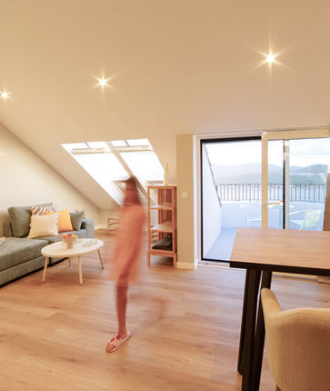 El Mirador is the second of our apartments, featuring a modern and elegant design that perfectly complements the panoramic views offered from every window. This apartment also includes a terrace where you can enjoy a coffee while taking in the natural beauty of the Ría da Estrela. The spacious and bright areas are designed to offer you an unforgettable stay.